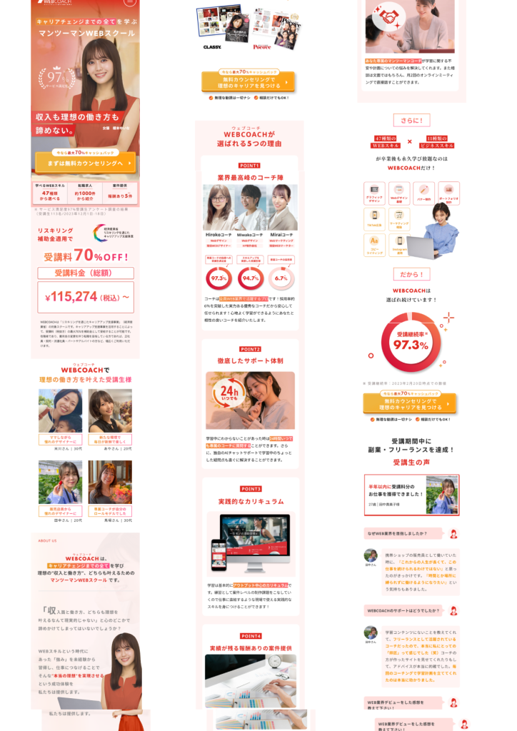 【意識した亊】スクロール離脱を防ぐためjqueryで動きをつけたLPを作成しました。